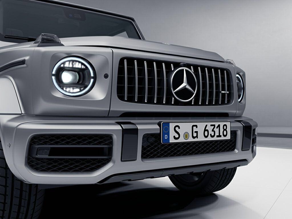 Das Gesicht des G 63 wird geprägt von der AMG-spezifischen Kühlerverkleidung sowie dem AMG-eigenen Stoßfänger mit großen seitlichen Lufteinlässen und Zierteilen in iridiumsilber matt. Serienmäßig sind Hauptscheinwerfer, Blinker und Rückleuchten in LED High Performance-Technologie ausgeführt. Diese Beleuchtung verbraucht weniger Energie und ist besonders langlebig.