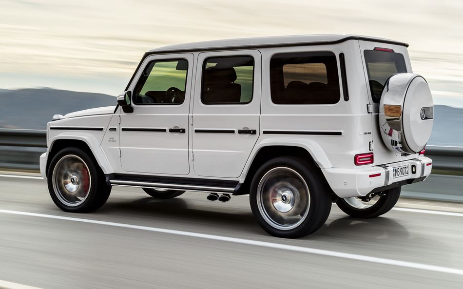 Der AMG 4,0-Liter-V8-Biturbomotor löst nun auch im G 63 den bisherigen 5,5-Liter-V8-Biturbomotor ab. Er leistet hier 585 PS und stellt ein maximales Drehmoment von 850 Nm bereit. Es steht über ein breites Drehzahlband von 2.500 bis 3.500/min zur Verfügung und vermittelt so das Gefühl überlegener Souveränität. Der Spurt aus dem Stand auf Tempo 100 km/h ist in 4,5 Sekunden erledigt. Der dynamische Vortrieb reicht bis zur abgeregelten Höchstgeschwindigkeit von 220 km/h, mit AMG Driver‘s Package bis 240 km/h.